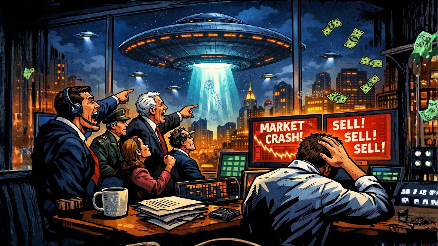 A disclosure-style shock would provide that cover instantly. Strip away the conspiracies and the core point is simple: markets don’t fail because numbers change…they fail because belief collapses.