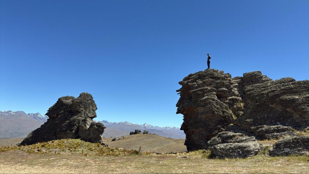 Brad’s recent trip to Queenstown, New Zealand, taken from the hills above Cromwell on the Nevis Crossing road. That’s not an Orc from Lord of the Rings on top of those rocks...it’s his son. Why did he climb it? Because it was there!