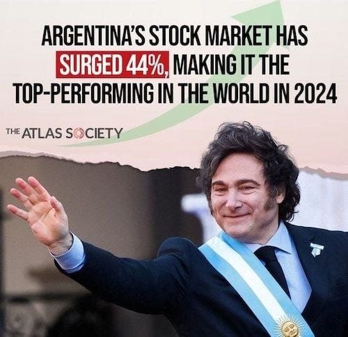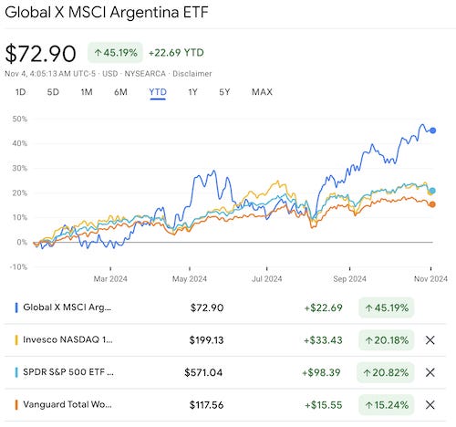We touched on Argentina in the last missive, so won’t be rehashing the fundamentals and the political and economic sea-change under Javier Milei that’s fueling a lot of this growth.