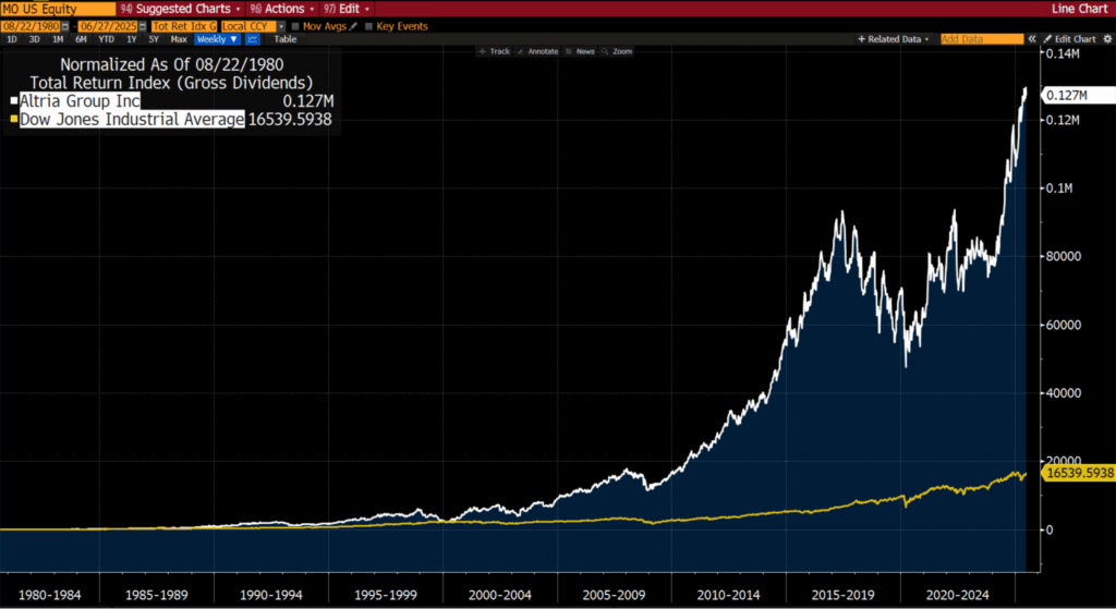 All well and good! But in 1980 investing in cigarette stocks (like Altria) would have likely been about as popular as investing in oil and gas stocks today (like Exxon).