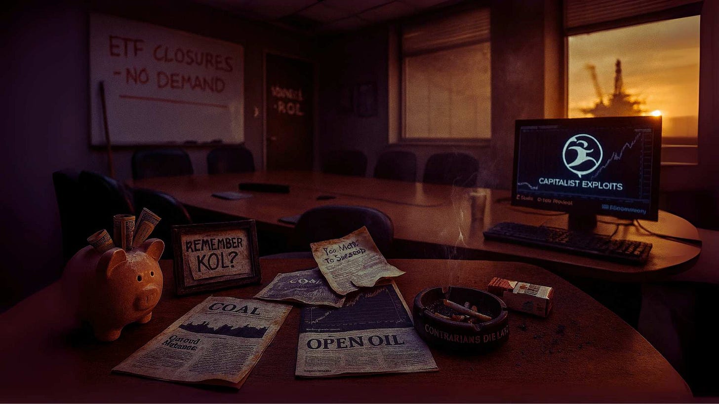 We remember KOL well. We bought it back in December 2019 (Insider/Glenorchy), sold out just before liquidation in December 2020, and with the proceeds bought a basket of coal miners which we continue to hold.