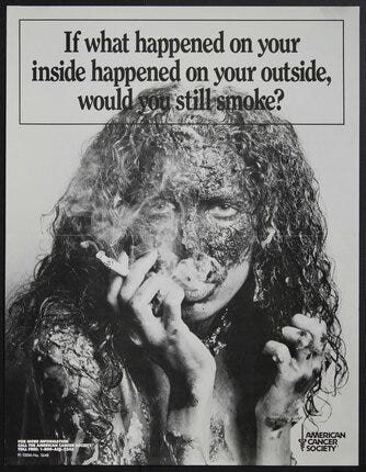 Remember all those “scare the hell out of you” anti-smoking ads of the 1970s and 1980s?