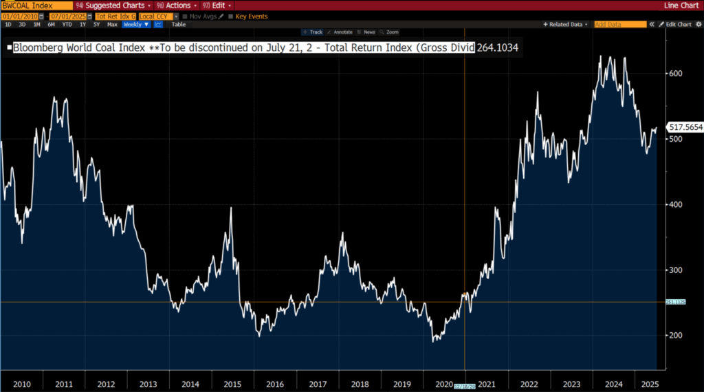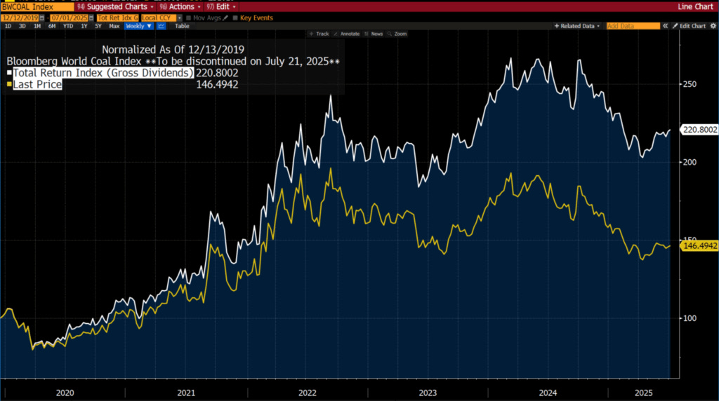 Those folks who bought in way back in 2019 or 2020 would have received returns more or less in line with the Bloomberg World Coal Index on a total return basis (dividends reinvested) — up some 120%, whereas the index itself is up some 46%.