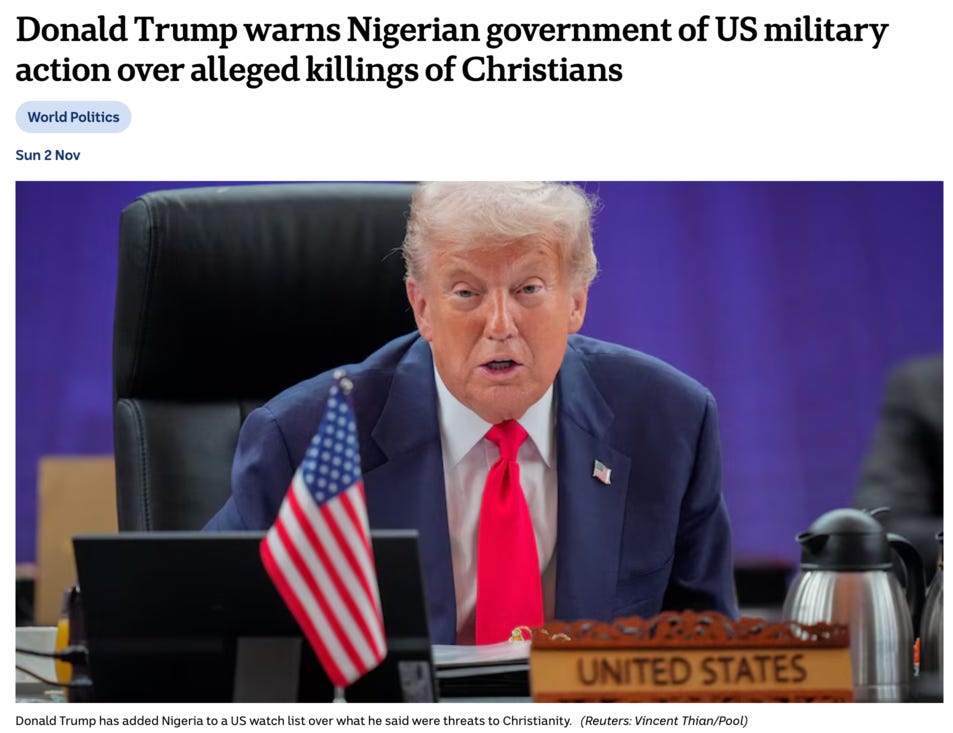 So apparently Nigerians are killing Christians… and the Donald won’t have any of it.