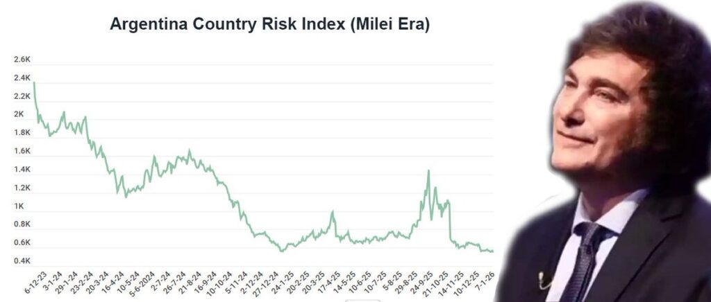 In a significant boost to Argentina’s financial stability, the country’s risk index dropped to its lowest level since 2018, reaching 548 basis points.