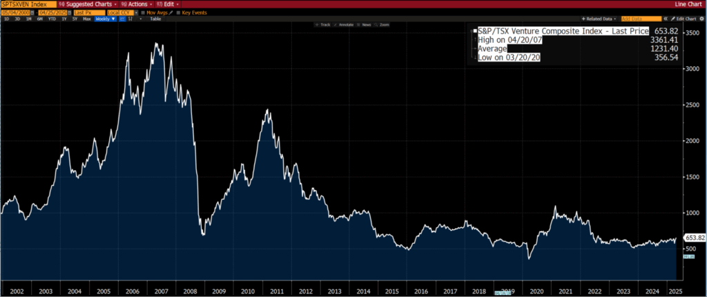 There are a couple of indices that folks should pay close attention to, namely the Canadian Venture Capital Index and the Australian Small Cap Resources Index. Why small cap indices?